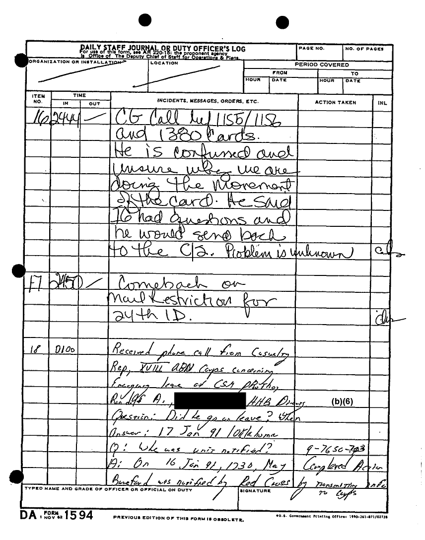 Document 180 f:/Week-22/BX001433/MESSAGE TRAFFIC LOGS-COMPLETED ACTIONS/daily staff journal duty log:07199610203890