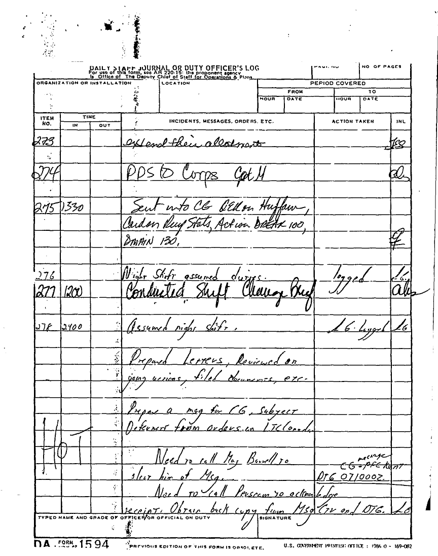 Document 180 f:/Week-22/BX001433/MESSAGE TRAFFIC LOGS-COMPLETED ACTIONS/daily staff journal duty log:07199610203890
