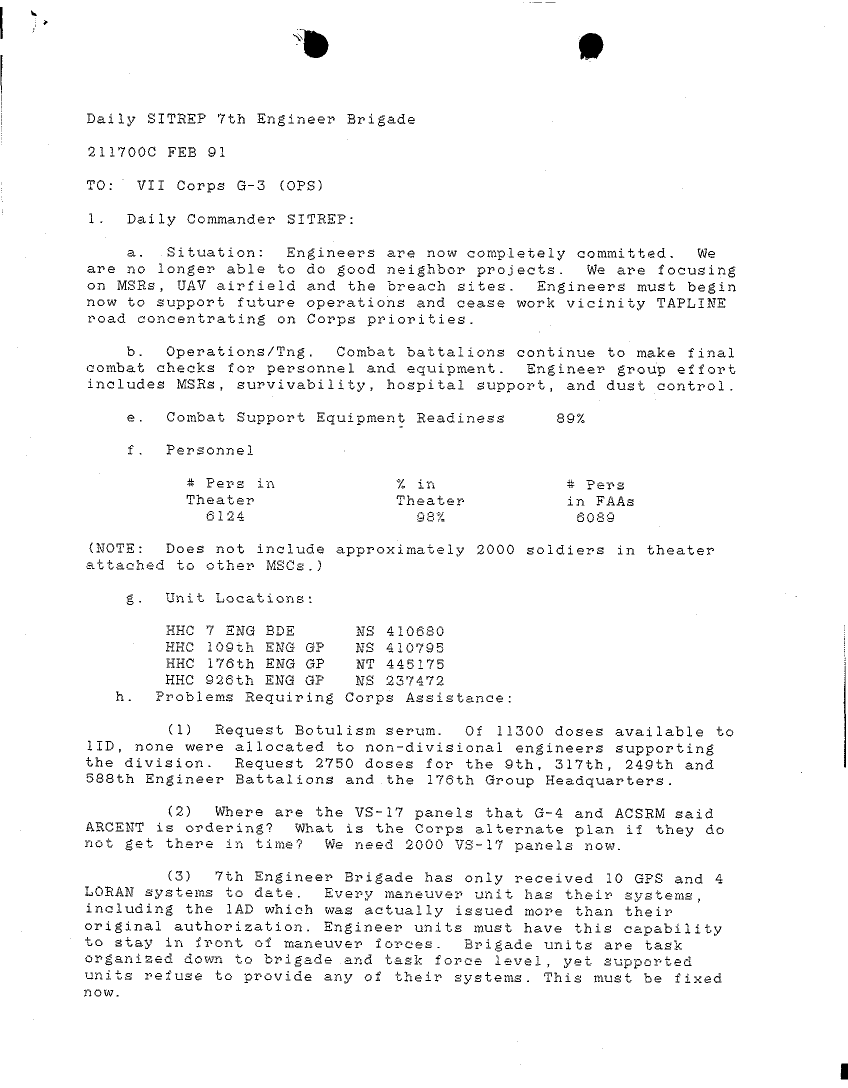 Document 35 f:/Week-24/BX000213/SITUATION REPORTS 7TH ENG BDE 22 DEC 90- 10 APR 91/daily commander sitrep:07269614225918