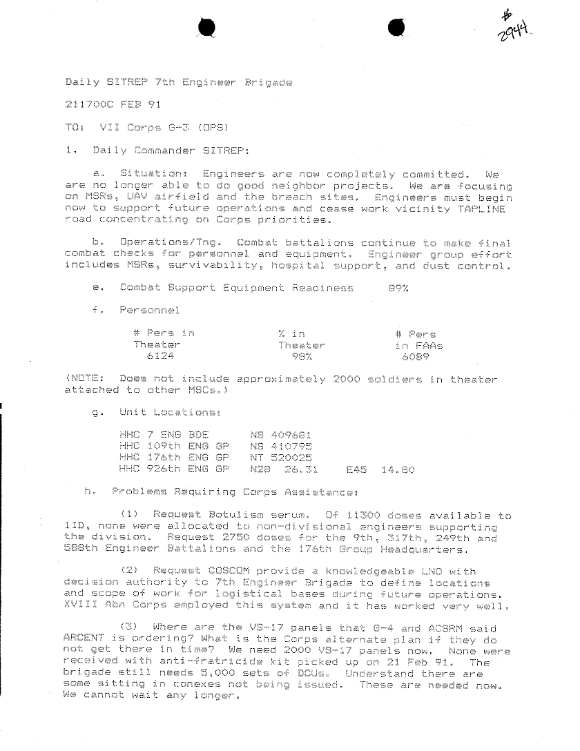 Document 35 f:/Week-24/BX000213/SITUATION REPORTS 7TH ENG BDE 22 DEC 90- 10 APR 91/daily commander sitrep:07269614225918