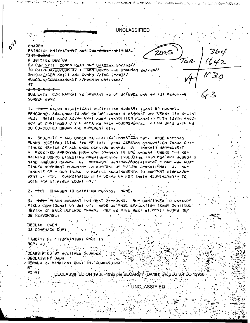 Document 61 f:/Week-17/BX000021/SITUATION REPORTS REAR CP DEC 90/cdr narrative summary dec 90 sequence no 0063:0802961505391