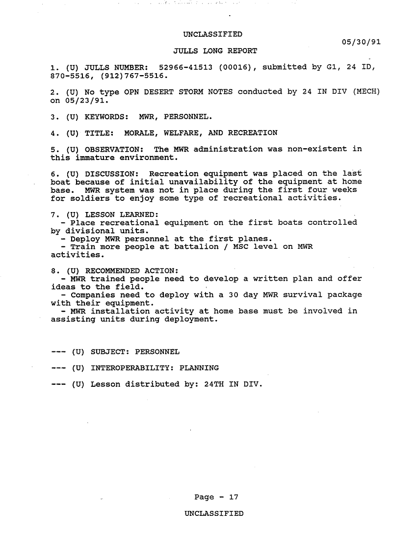 Subject = 24TH MECH INF DIV OPERATION DESERT STORM AFTER A