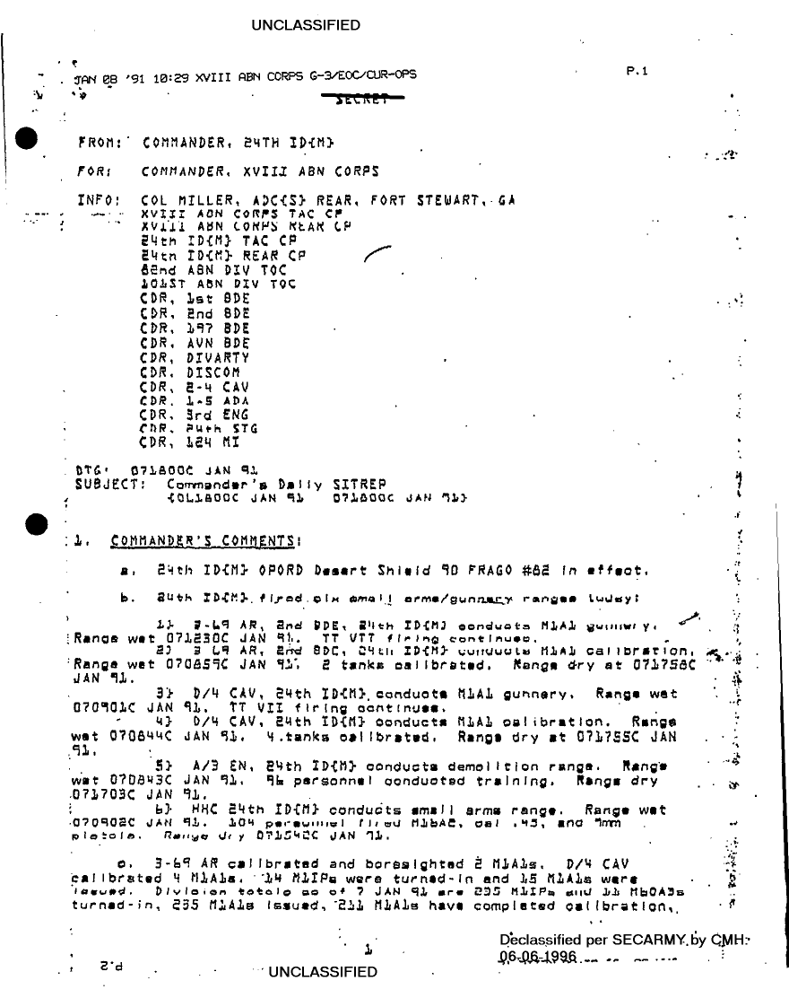 Subject = SITUATION REPORT 24TH ID 7 JAN 91