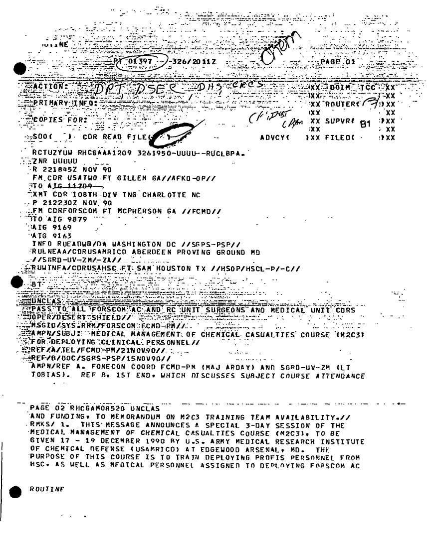 Document 2 f:/Week-21/BX001424/INCOMING MSG - DESERT SHIELD CHEM NOV-DEC 90/medical mngt of chem casualties course:08029615054718