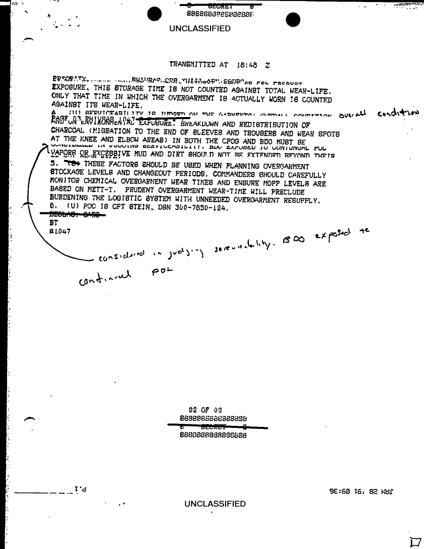 Document 2 f:/Week-29/BX000420/HISTORIANS BACKGROUND MATERIAL FILES - G3 NBC MIS 4 OF 4/chemical overgarment wear life and serviceabilit:08169613354066