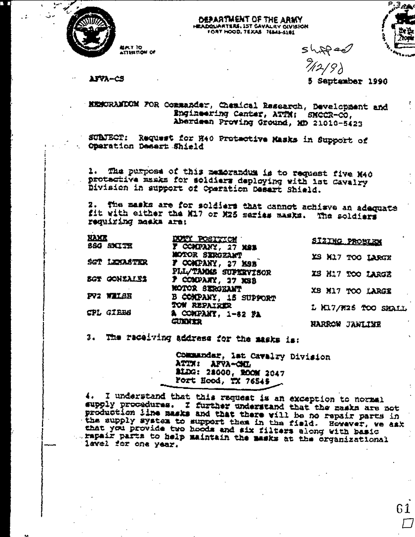 Document 3 f:/Week-29/BX000420/NBC MISCELLANEOUS INFORMATION/req for m40 protective masks in support of oper :08169613361077