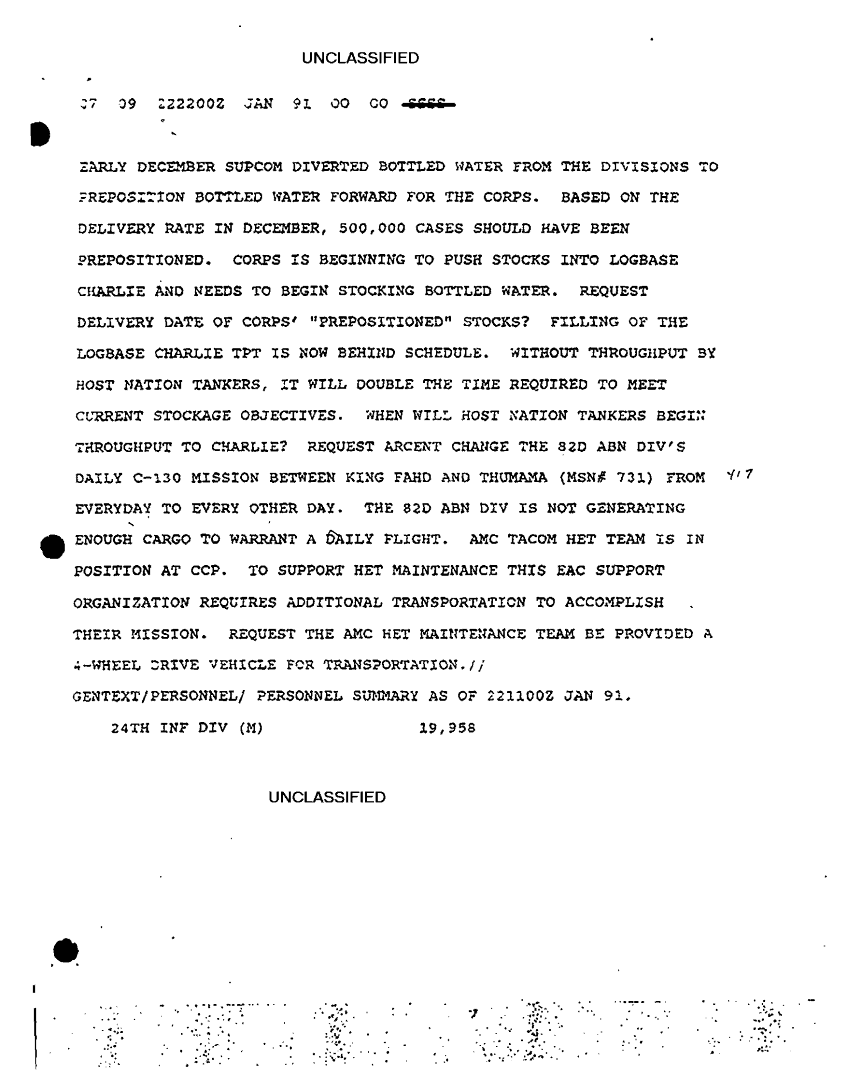 Folder Title = COMMAND REPORTS SITREPS XVIII ABC JAN 91