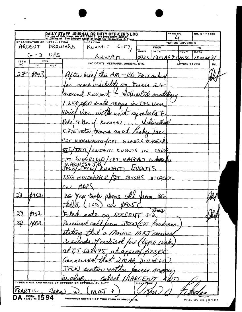 Document 11 f:/Week-33/BX000497/tactical operations center logs tf freedom 11-13 march 1991/daily staff journal 13 mar 91:09139616140461