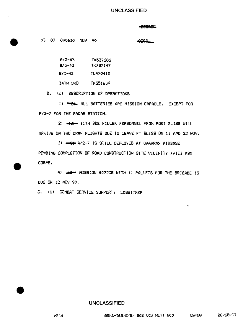 Folder Title = COMMAND REPORTS SITREPS 11TH ADA BDE 6 OCT 90-23 NOV 90