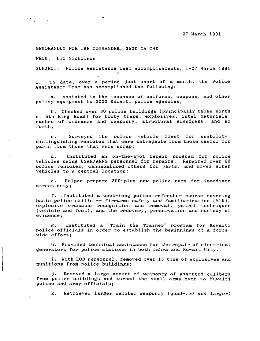 Document 5 f:/Week-33/BX000497/TACTICAL OPERATIONS CENTER LOGS TF FREEDOM 27-28 MARCH 1991/police assistance team accomplishments 27 mar 9:09139616150385