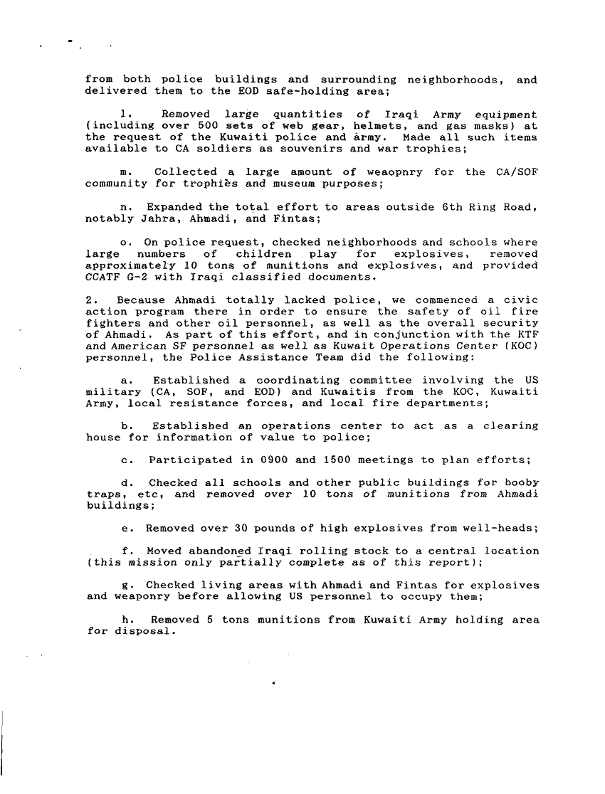 Document 5 f:/Week-33/BX000497/TACTICAL OPERATIONS CENTER LOGS TF FREEDOM 27-28 MARCH 1991/police assistance team accomplishments 27 mar 9:09139616150385