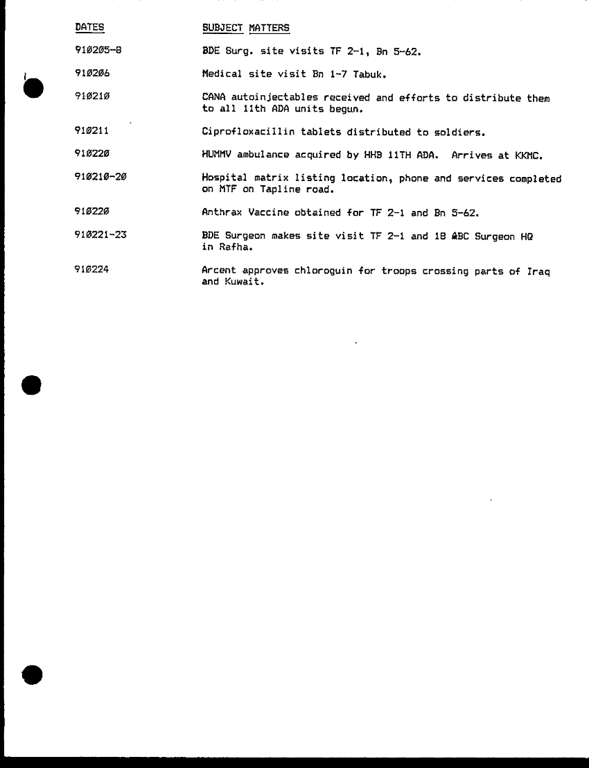Document 8 f:/Week-33/BX000473/COMMAND REPORTS 11TH ADA BDE LESSONS LEARNED 1 OF 2 PERMANENT DESERT SHIELD-STORM/chronology of medical events for 11th ada bde:09139616123820