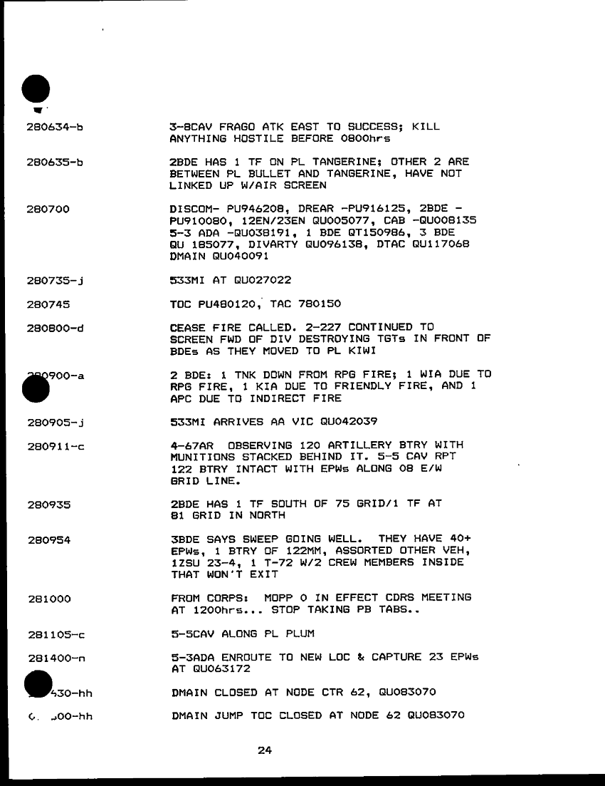 Document 25 f:/Week-28/BX001301/OPERATIONS ORDER 90-10 AND HISTORY/chronology of 3ad operation desert spear 24 28 f:09139616131542