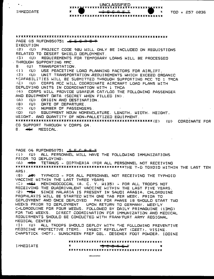 Document 6 f:/Week-28/BX000409/TACTICAL OPERATIONS CENTER LOGS - MSG FILE LOGS 15 SEP 90/ds opord no 15 deployment of avim bn hq 14 sep :09139616141465