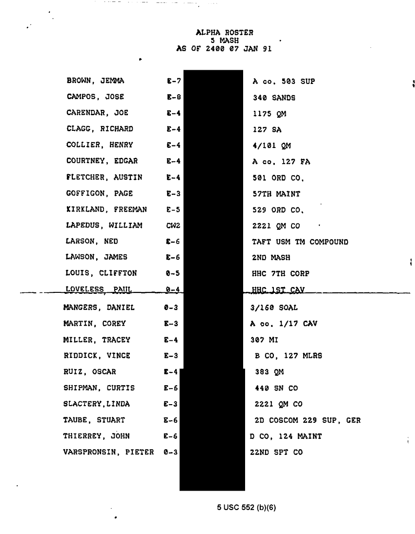 Document 8 f:/Week-31/BX000460/MEDSTAT- SITREPS - JANUARY - 1/patient alpha roster 7 jan 91:09069615152517
