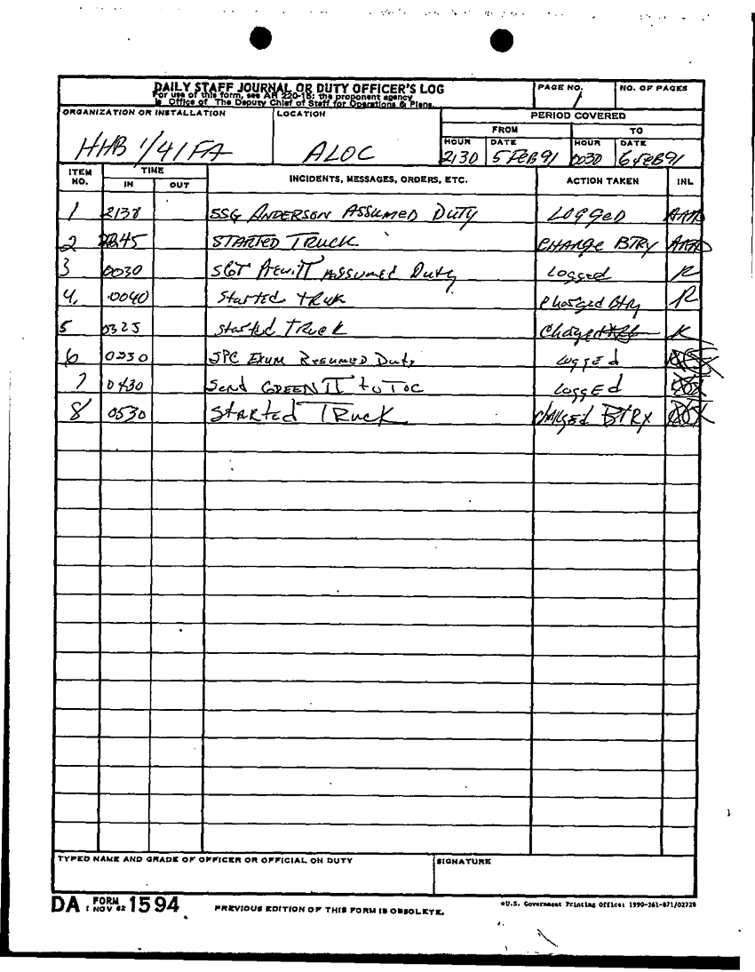 Document 21 f:/Week-22/BX001431/DAILY STAFF JOURNALS - 24TH INF - JAN-FEB 91/daily staff journal hhb 1 41 a loc:09069614062522