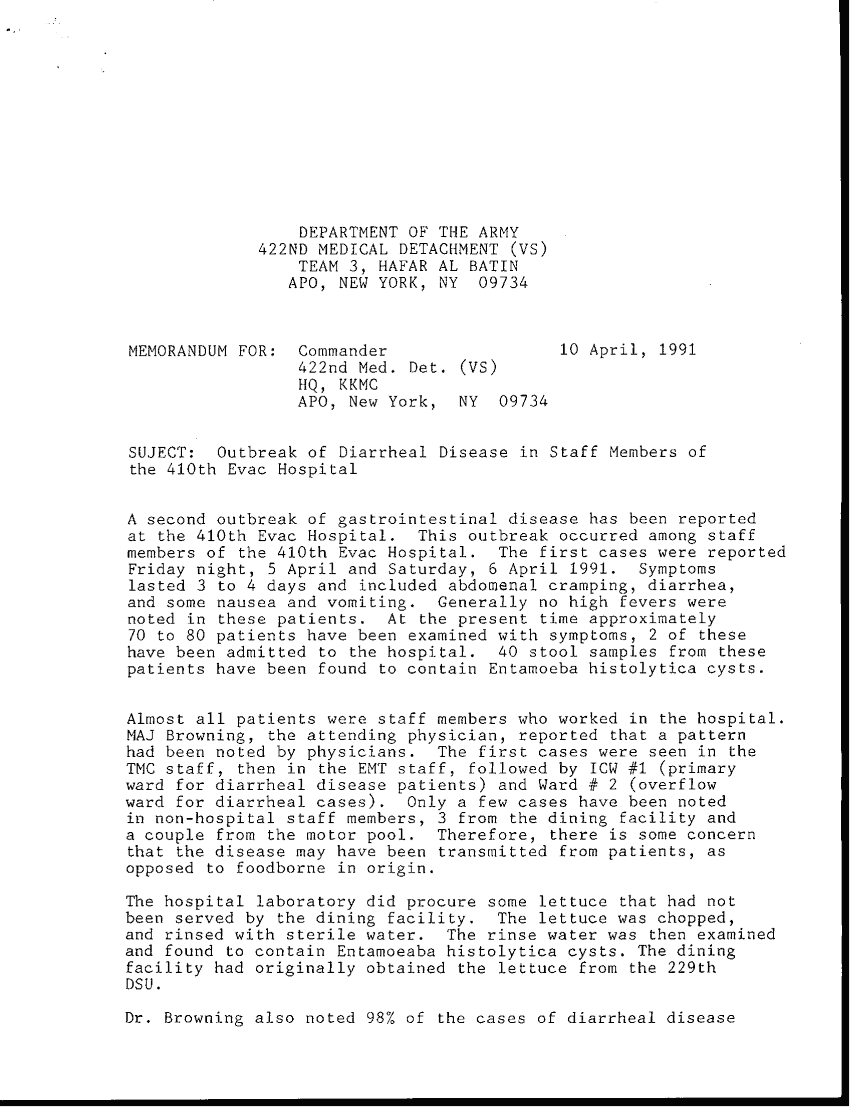Document 2 f:/Week-34/BX005153/HISTORICAL FILE 422ND MED DET/422nd med det memo diarrhea outbreak 41oth evac :09209615583763