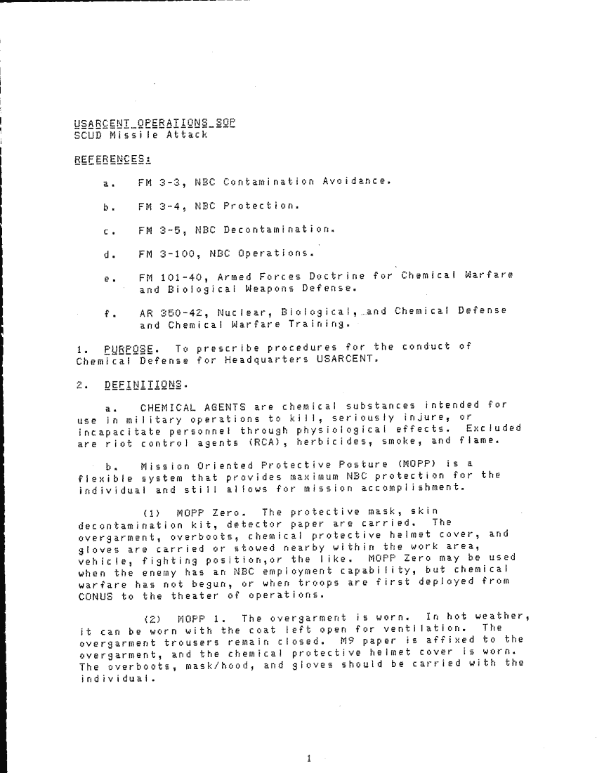Subject = SCUD MISSILE ATTACK STANDING OPERATING PROCEDURE
