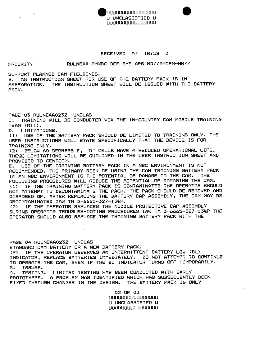 Document 3 f:/Week-29/BX000430/TACTICAL OP CTR LOGS - MSG FILE LOG 1-2 JAN 91/material release req for call fwd of chemical ag:09209615581323