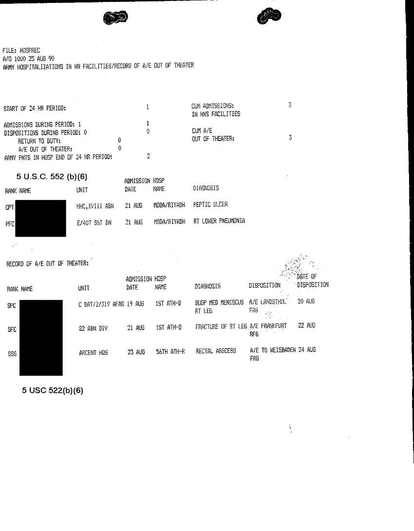 Document 1 f:/Week-32/BX000482/MEDSTAT - SITREPS AUG 90 1 OF 1/army hospitalization outpatient visits 25 sep:10119615402814