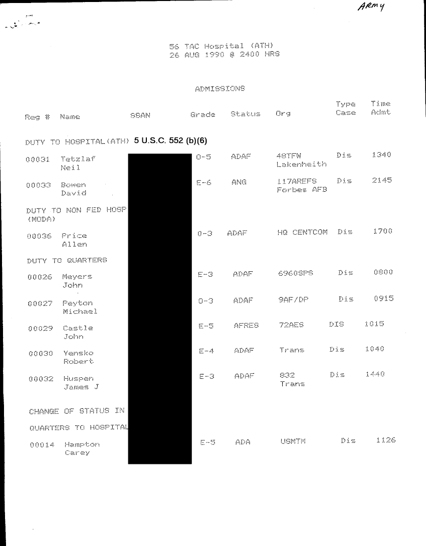 Subject = ARMY HOSPITALIZATION OUTPATIENT VISITS 26 SEP