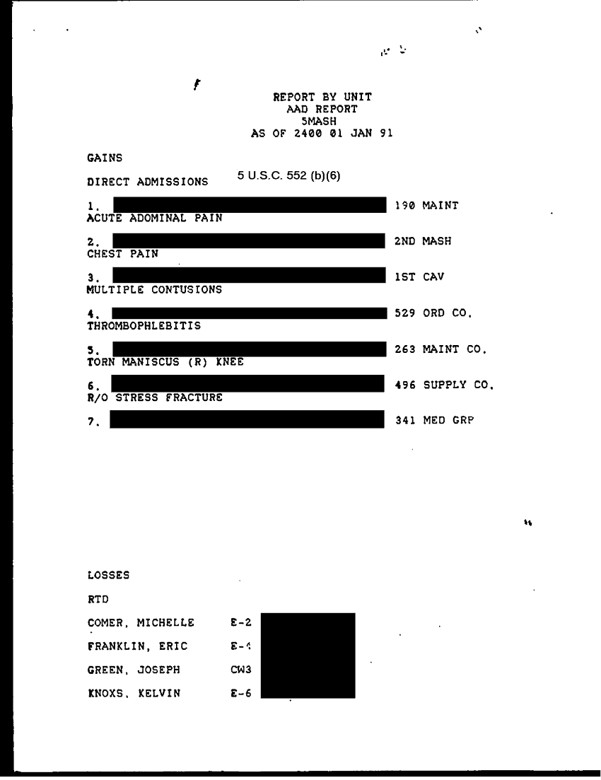 Document 46 f:/Week-31/BX000460/MEDSTAT- SITREPS - JANUARY - 1/patient alpha roster 2 jan 91:10119615403519