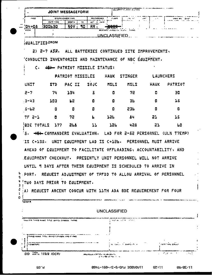 Document 8 f:/Week-32/BX000499/COMMAND REPORTS SITREPS 11TH ADA BDE 7 NOV - 7 DEC 90/11th ada bde situation report no 97 29 to 30 no:10119615413461