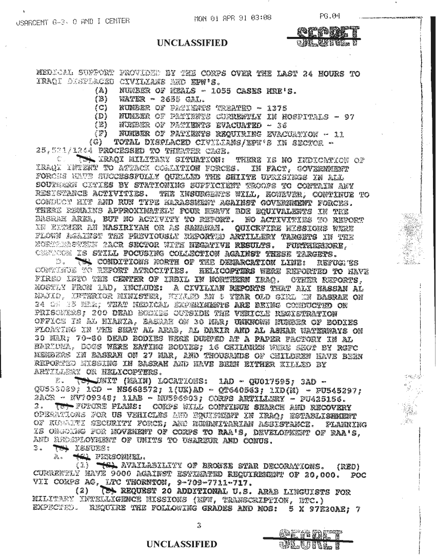 Document 7 f:/Week-33/BX000494/TACTICAL OPERATIONS CENTER LOGS TF FREEDOM 1 - 9 APR 91 -1/vii corps sitrep 1 apr 91:10019616505764