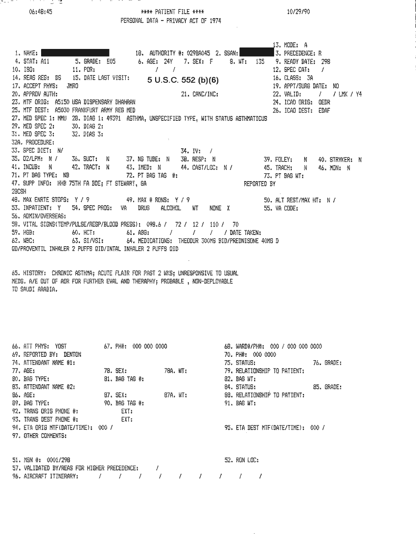 Document 46 f:/Week-32/BX000482/MEDSTAT - SITREPS OCT 90 3 OF 4/patient file 29 oct 90:10019616503417