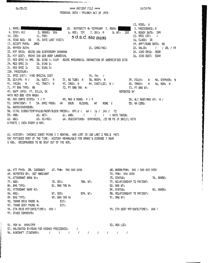 Document 46 f:/Week-32/BX000482/MEDSTAT - SITREPS OCT 90 3 OF 4/patient file 29 oct 90:10019616503417