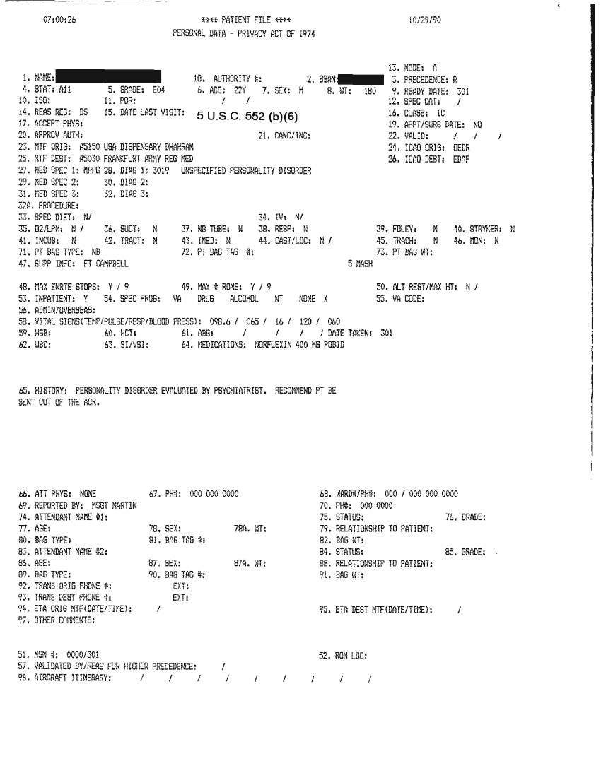 Document 46 f:/Week-32/BX000482/MEDSTAT - SITREPS OCT 90 3 OF 4/patient file 29 oct 90:10019616503417