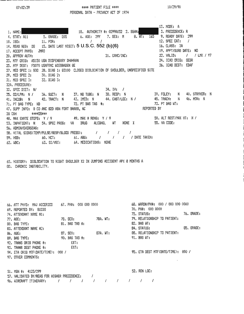 Document 46 f:/Week-32/BX000482/MEDSTAT - SITREPS OCT 90 3 OF 4/patient file 29 oct 90:10019616503417