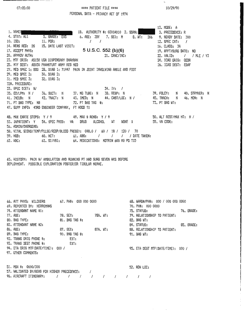 Document 46 f:/Week-32/BX000482/MEDSTAT - SITREPS OCT 90 3 OF 4/patient file 29 oct 90:10019616503417