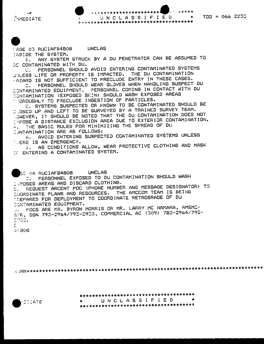 Document 3 f:/Week-31/BX000438/TOC LOGS MSG FILE LOGS 8-10 MAR 91/depleted uranium comtamination:10019616510275