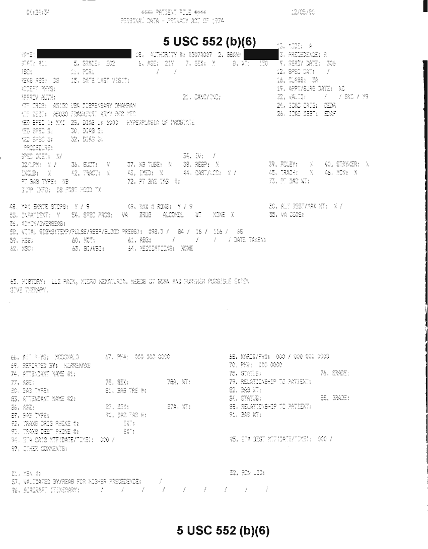 Document 48 f:/Week-32/BX000482/MEDSTAT - SITREPS DEC 90 1 OF 6/patient file personal data:10019616510479