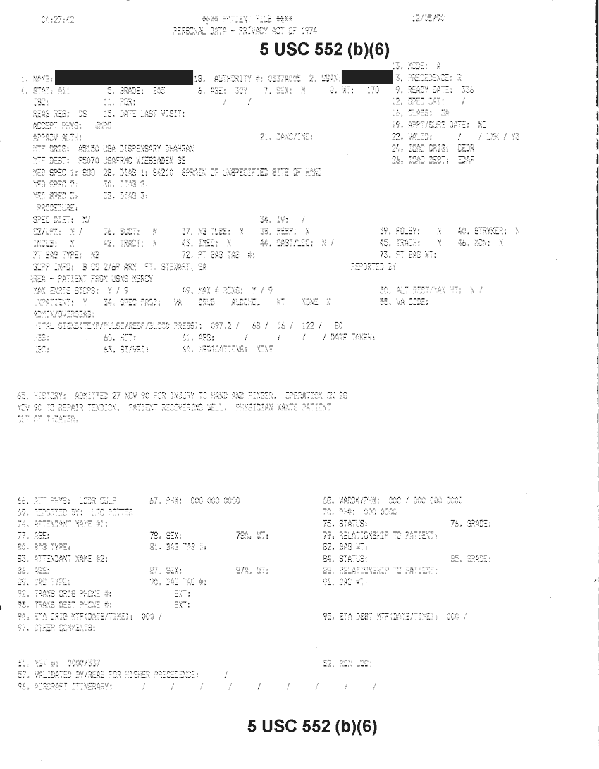 Document 48 f:/Week-32/BX000482/MEDSTAT - SITREPS DEC 90 1 OF 6/patient file personal data:10019616510479