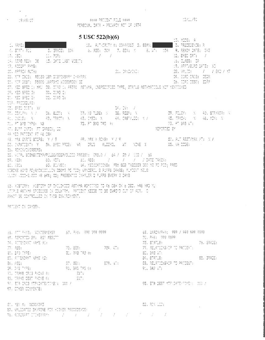 Document 20 f:/Week-32/BX000482/MEDSTAT - SITREPS DEC 90 1 OF 6/patient file personal data:10019616510581