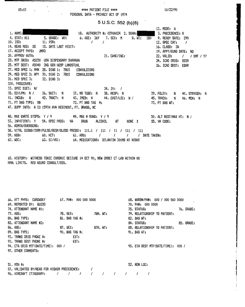 Document 41 f:/Week-32/BX000482/MEDSTAT - SITREPS OCT 90 3 OF 4/patient file:10019616503518