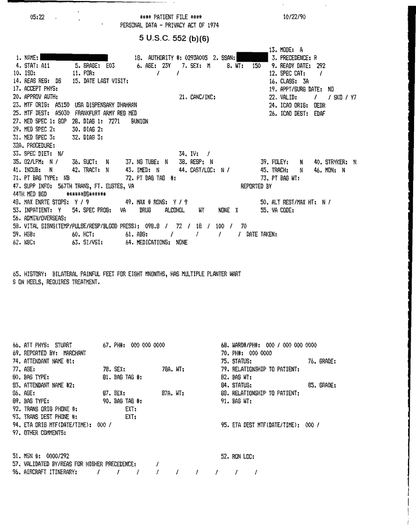 Document 41 f:/Week-32/BX000482/MEDSTAT - SITREPS OCT 90 3 OF 4/patient file:10019616503518