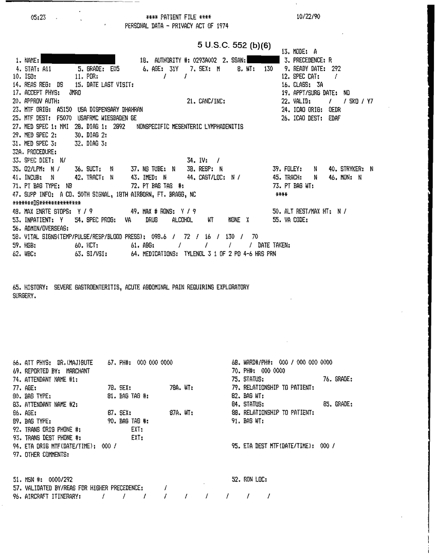 Document 41 f:/Week-32/BX000482/MEDSTAT - SITREPS OCT 90 3 OF 4/patient file:10019616503518