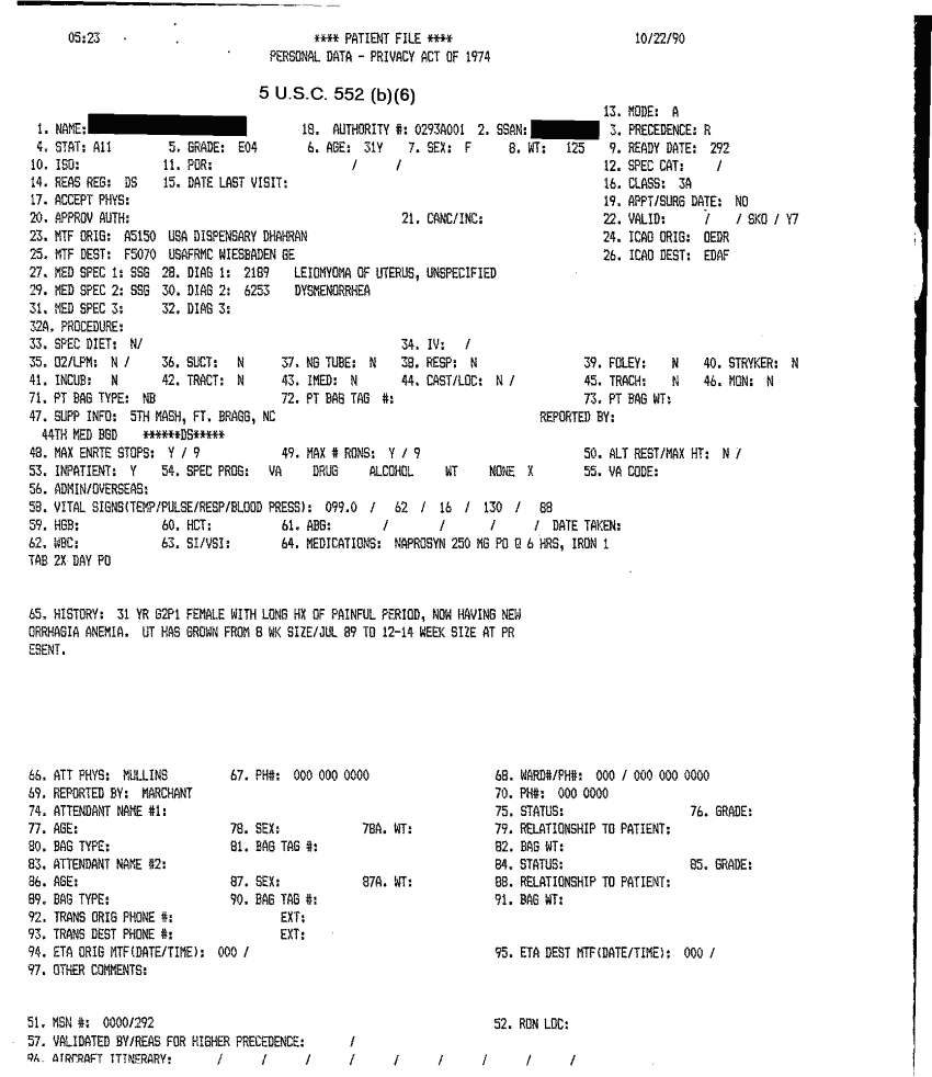 Document 41 f:/Week-32/BX000482/MEDSTAT - SITREPS OCT 90 3 OF 4/patient file:10019616503518