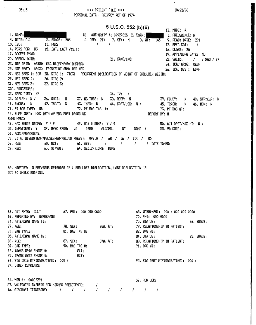 Document 41 f:/Week-32/BX000482/MEDSTAT - SITREPS OCT 90 3 OF 4/patient file:10019616503518