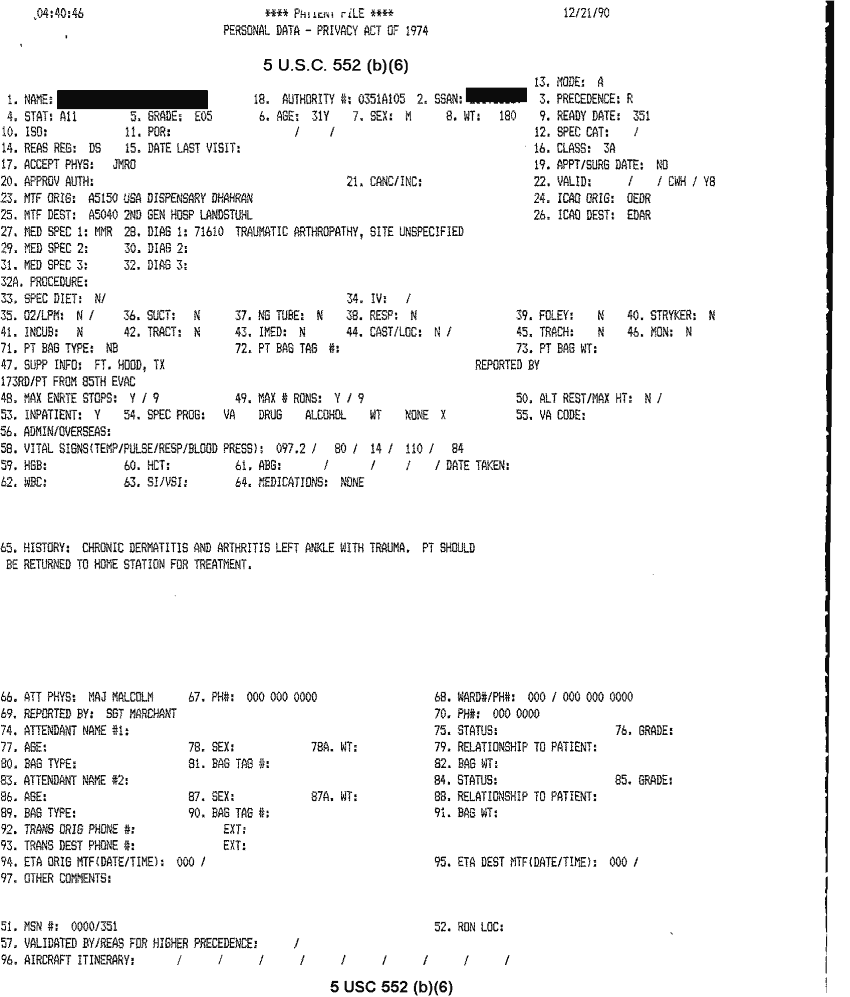 Document 26 f:/Week-32/BX000482/MEDSTAT - SITREPS DEC 90 2 OF 6/patient files 21 dec 90:10019616503519