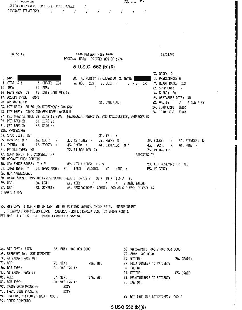 Document 26 f:/Week-32/BX000482/MEDSTAT - SITREPS DEC 90 2 OF 6/patient files 21 dec 90:10019616503519