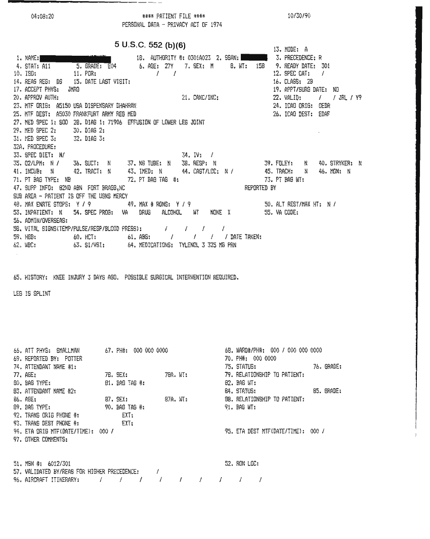 Document 31 f:/Week-32/BX000482/MEDSTAT - SITREPS OCT 90 3 OF 4/patient file:10019616503620