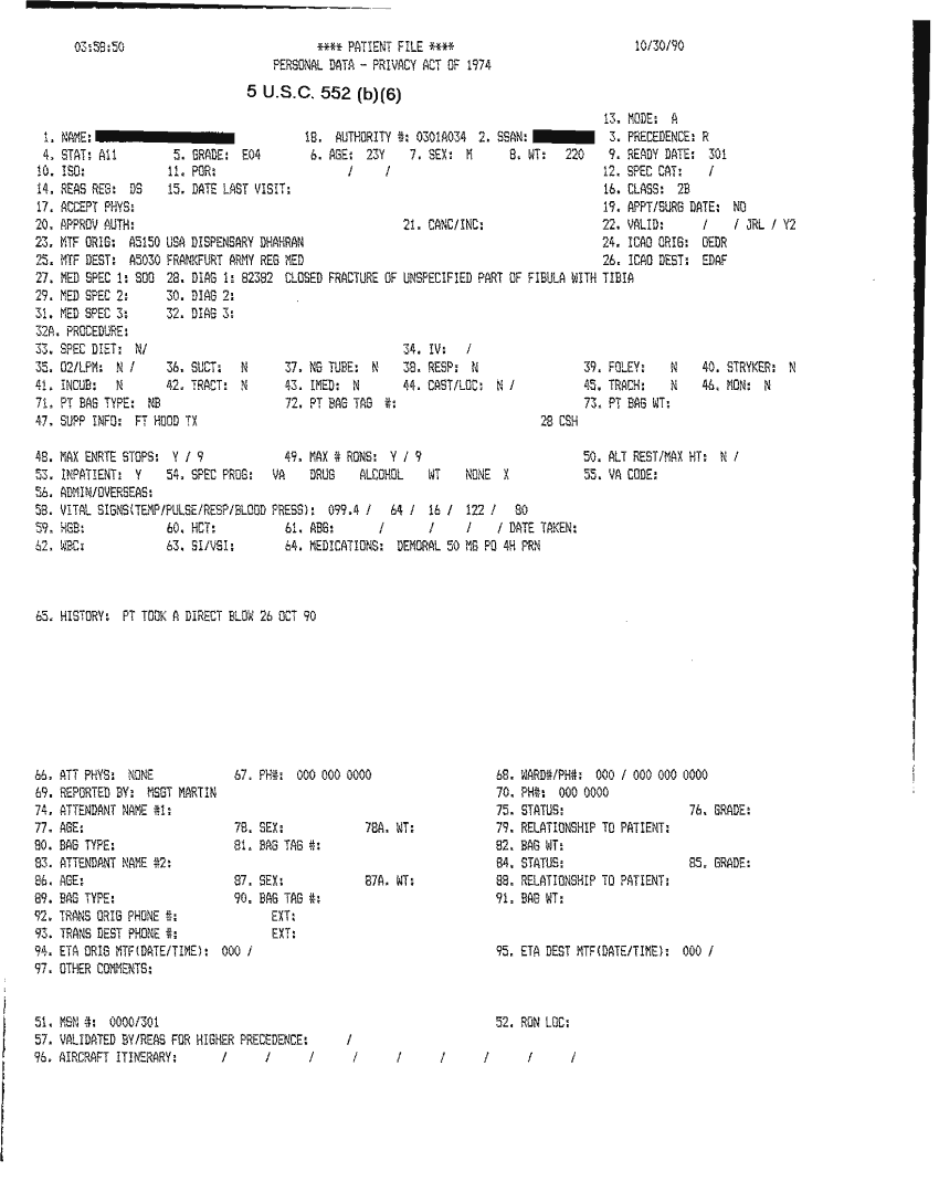 Document 31 f:/Week-32/BX000482/MEDSTAT - SITREPS OCT 90 3 OF 4/patient file:10019616503620