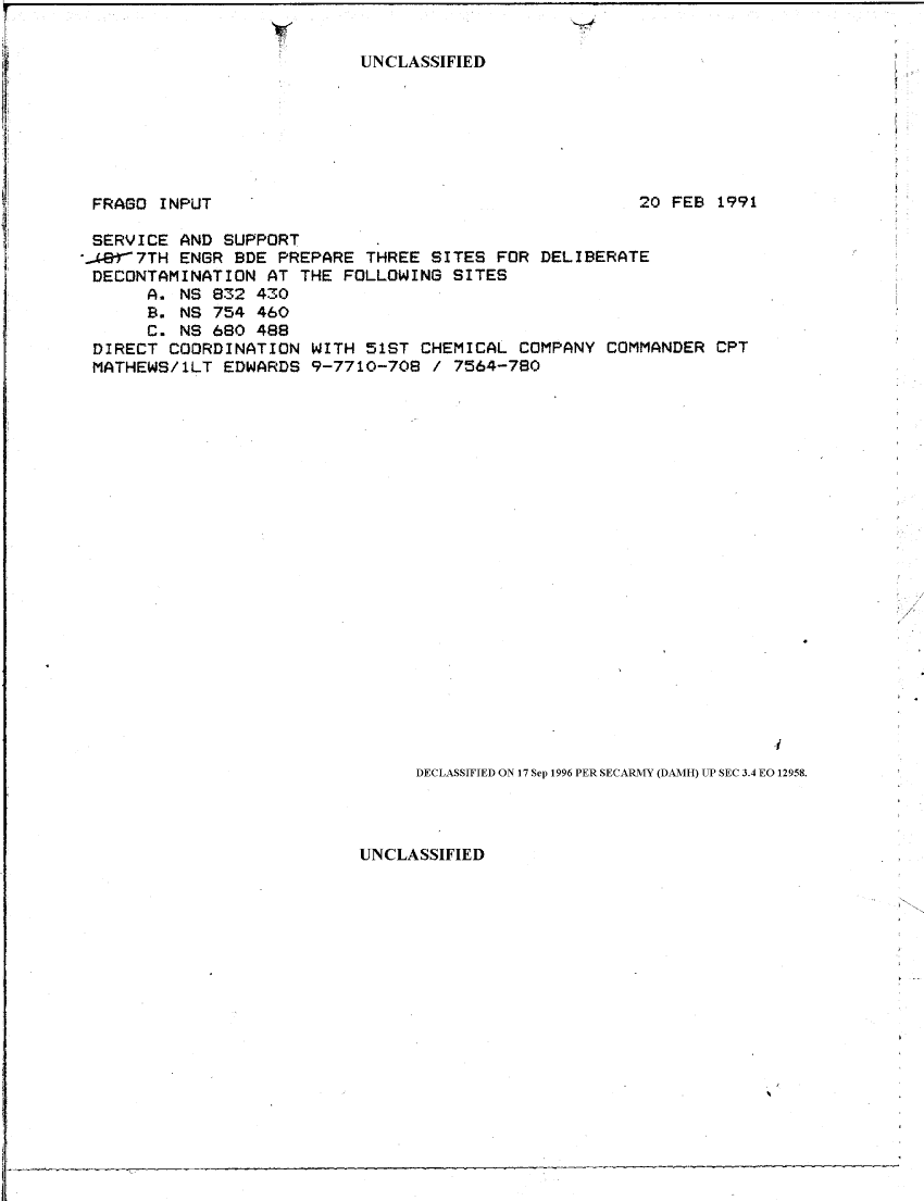 Document 1 f:/Week-24/BX000214/VII CORPS DAILY STAFF JOURNAL 20 FEB 91/frago input 20 feb 91:10019616510785