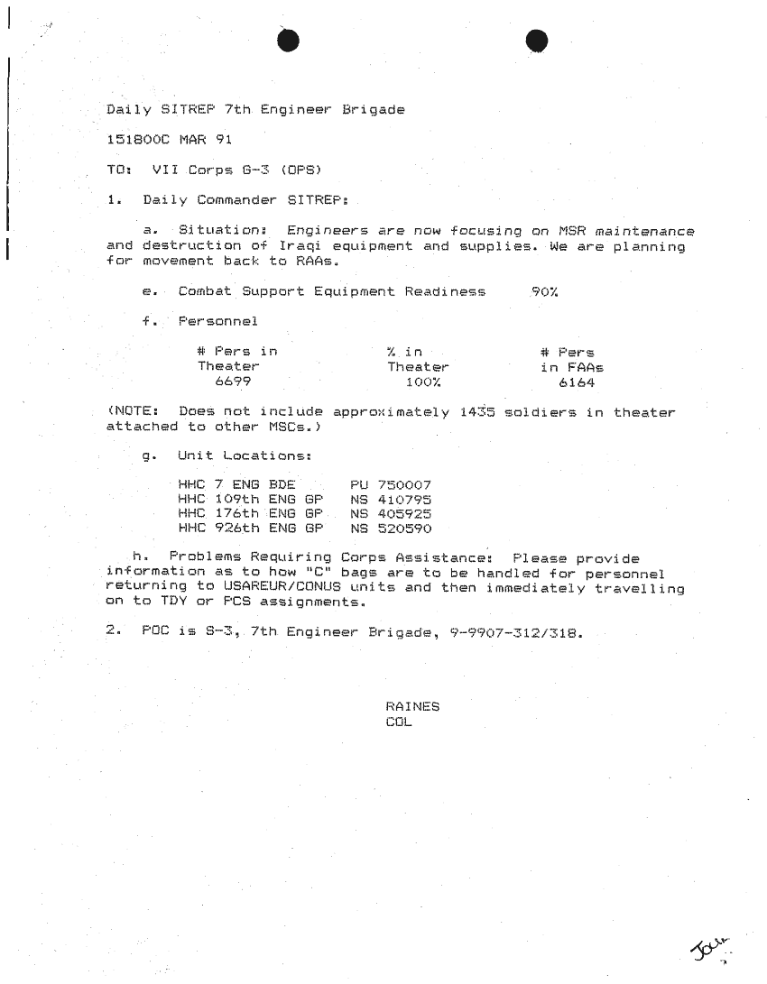 Folder Title = SITUATION REPORTS 7TH ENG BDE 22 DEC 90- 10 APR 91