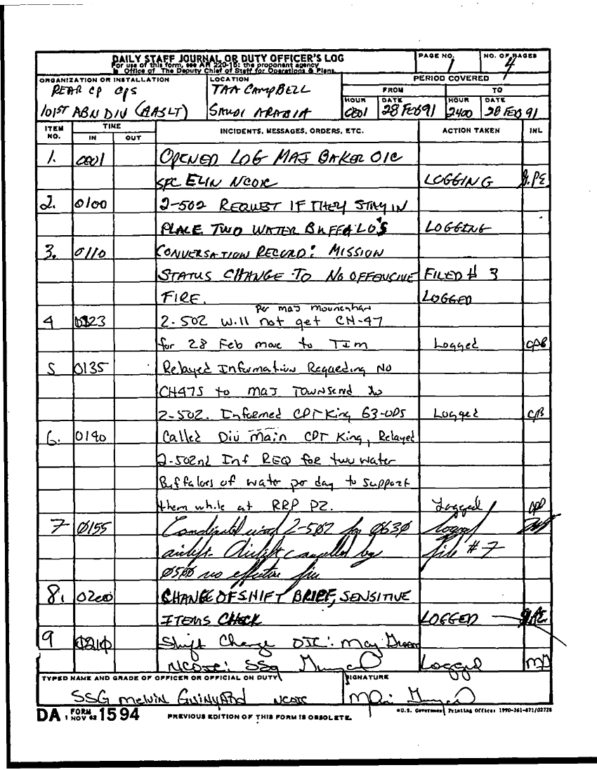 Document 48 f:/Week-22/BX001604/DUTY LOG G3 MAIN 15-27 SEP 90 G3 REAR 21-28 FEB 91/daily staff journal:10259613091549