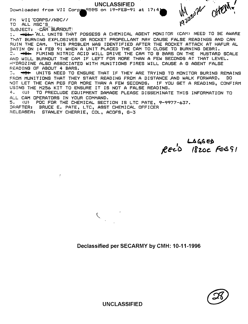 Document 1 f:/Week-28/BX001340/DAILY STAFF JOURNAL-TOC LOGS-19-20 FEB 91/cam burnout:110496091401100